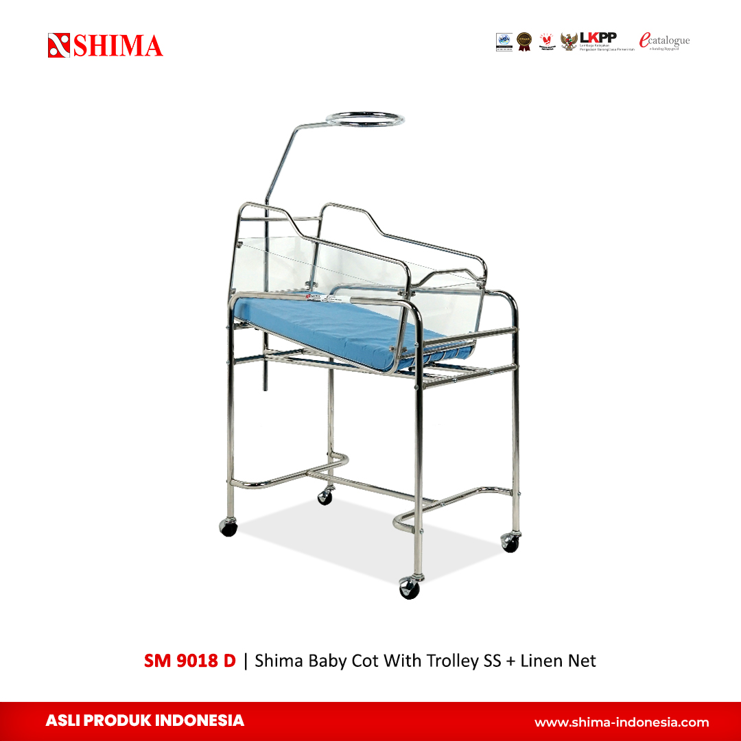 SHIMA Baby Cot with Trolley PC A SM 9018 A merupakan ranjang bayi lokal yang berkualitas, di produksi di Indonesia dengan standar international yang berizin dan bersertifikat. Kami menjamin kualitas setiap produk yang prima.