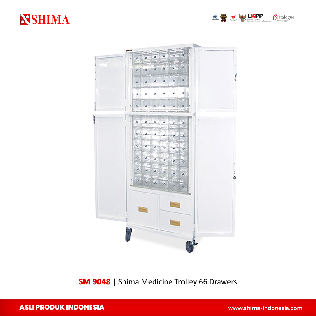 Shima Medicine Trolley 66 Drawer SM 9048 adalah pilihan terbaik untuk rumah sakit, klinik, atau apotek yang membutuhkan penyimpanan obat yang aman, teratur, dan mudah diakses. Dapatkan sekarang dan tingkatkan efisiensi dalam pengelolaan obat dengan trolley berkualitas dari Shima.